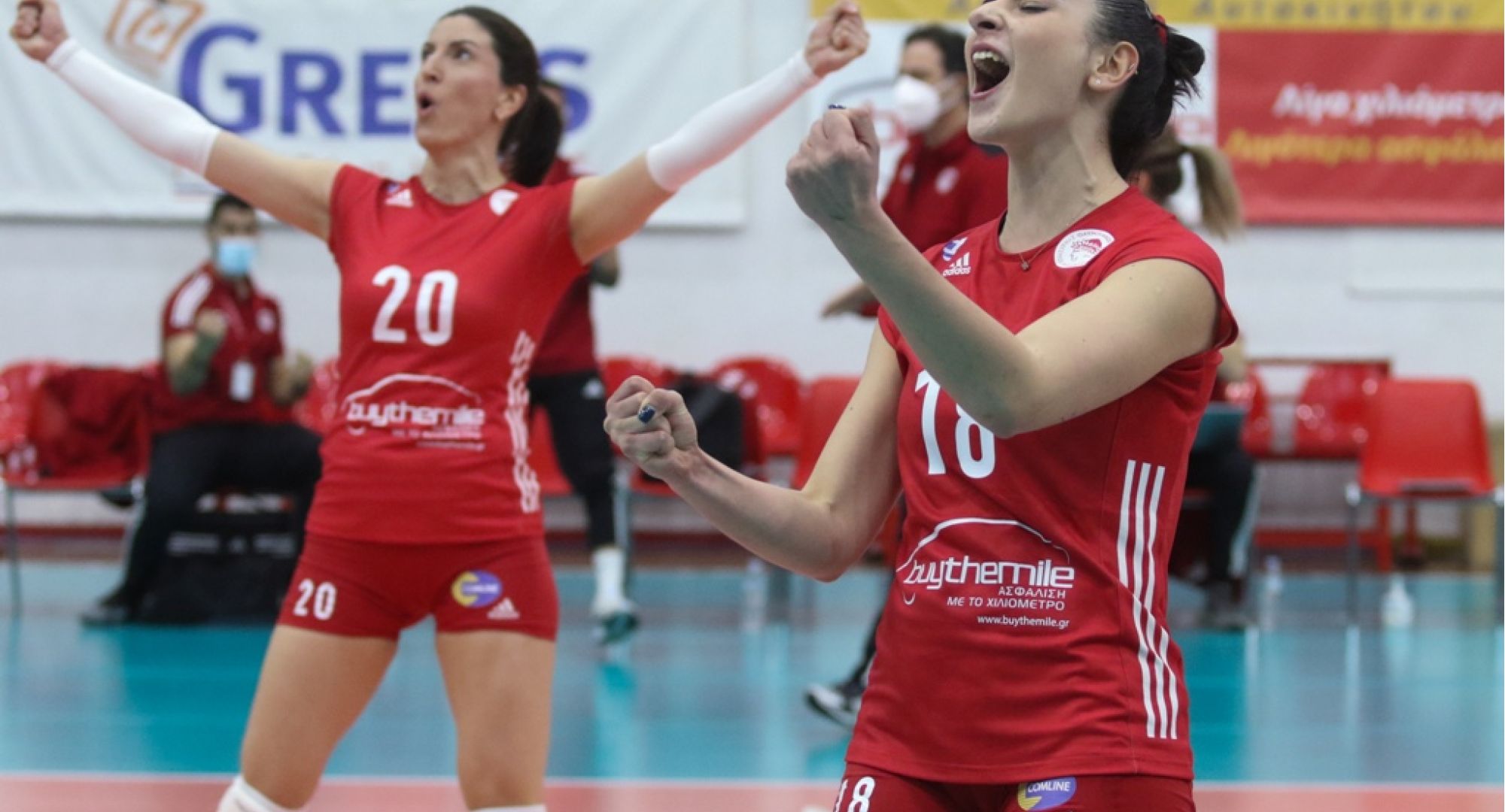 Στο πρώτο σετ, οι δυο ομάδες πήγαιναν πόντο πόντο, ο Ολυμπιακός στην εξέλιξη του βρέθηκε πίσω στο σκορ με 14-18, αλλά με ένα επιμέρους 4-0 σερί, ισοφάρισε σε 18-18. Οι φιλοξενούμενες ανέκτησαν το προβάδισμα φτάνοντας στο 20-21, όμως ο Θρύλος με νέο 4-0 σερί, και άσσο της Φακοπουλίδου έφτασε στο σετ μπολ με 24-21. Το Μαρκόπουλο μείωσε σε 24-23, όμως η Αργυρίου σημείωσε το 25-23, δίνοντας το προβάδισμα στα σετ στον Ολυμπιακό.
