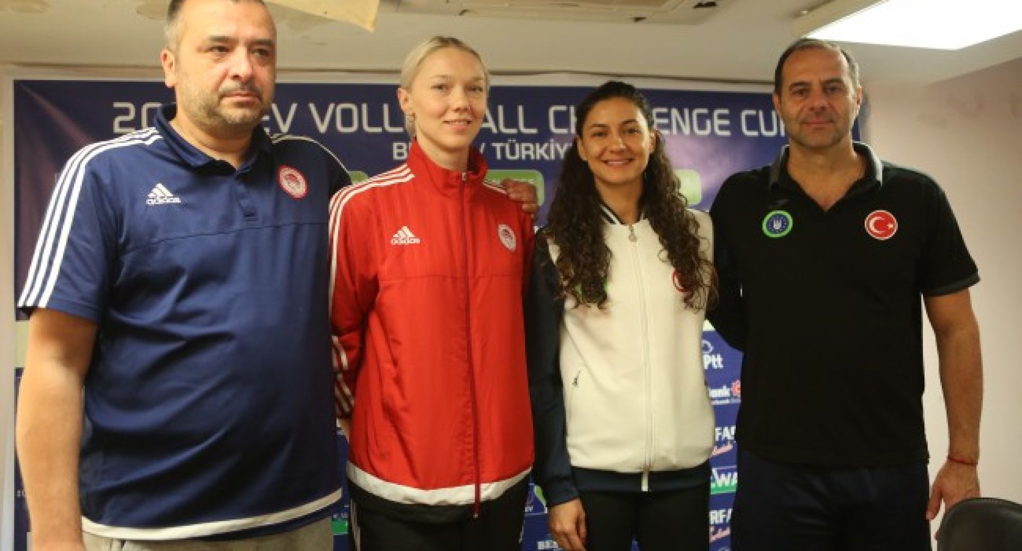 Πραγματοποιήθηκε σήμερα το μεσημέρι (10/4) στο γήπεδο της Μπούρσα η Συνέντευξη Τύπου του δεύτερου ευρωπαϊκού τελικού του CEV Challenge Cup Γυναικών. Από πλευράς Ολυμπιακού το παρών έδωσε ο προπονητής Μπράνκο Κοβάτσεβιτς και η Κατερίνα Γιώτα ενώ από τη Μπούρσα ο προπονητής Άντζελο Βερτσέτι και η αρχηγός Νιλάι Κάραγκατς.