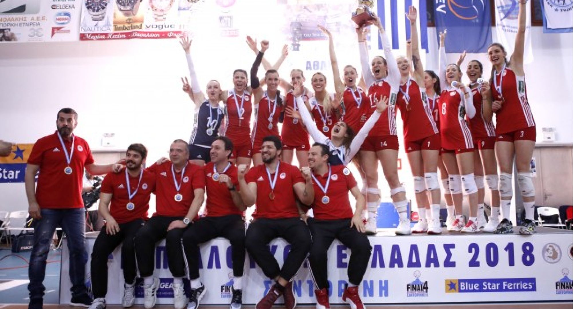 Κυπελλούχος Ελλάδας για 8η διαδοχική χρονιά, στέφθηκε η ομάδα βόλεϊ Γυναικών του Ολυμπιακού που επικράτησε με 3-0 σετ (25-15, 25-16, 25-19 ) του Πανναξιακού στον μεγάλο τελικό του Final 4 που ολοκληρώθηκε στη Σαντορίνη. Ο πολυνίκης του θεσμού σύλλογος μας, κατέκτησε τον πρώτο τίτλο της χρονιάς και 13ο του τμήματος, μαζί με τα πέντε σερί πρωταθλήματα και διεύρυνε την παντοκρατορία τους στις εγχώριες διοργανώσεις! Η ομάδα του Μπράνκο Κοβάτσεβιτς, που διαπρέπει και φέτος στην Ευρώπη, ευρισκόμενη ήδη στους «4» του Challenge Cup, βάζει πλώρη πλέον για την κατάκτηση του 6ου σερί πρωταθλήματος, ενώ διεκδικεί με αξιώσεις και τον ευρωπαϊκό τίτλο.