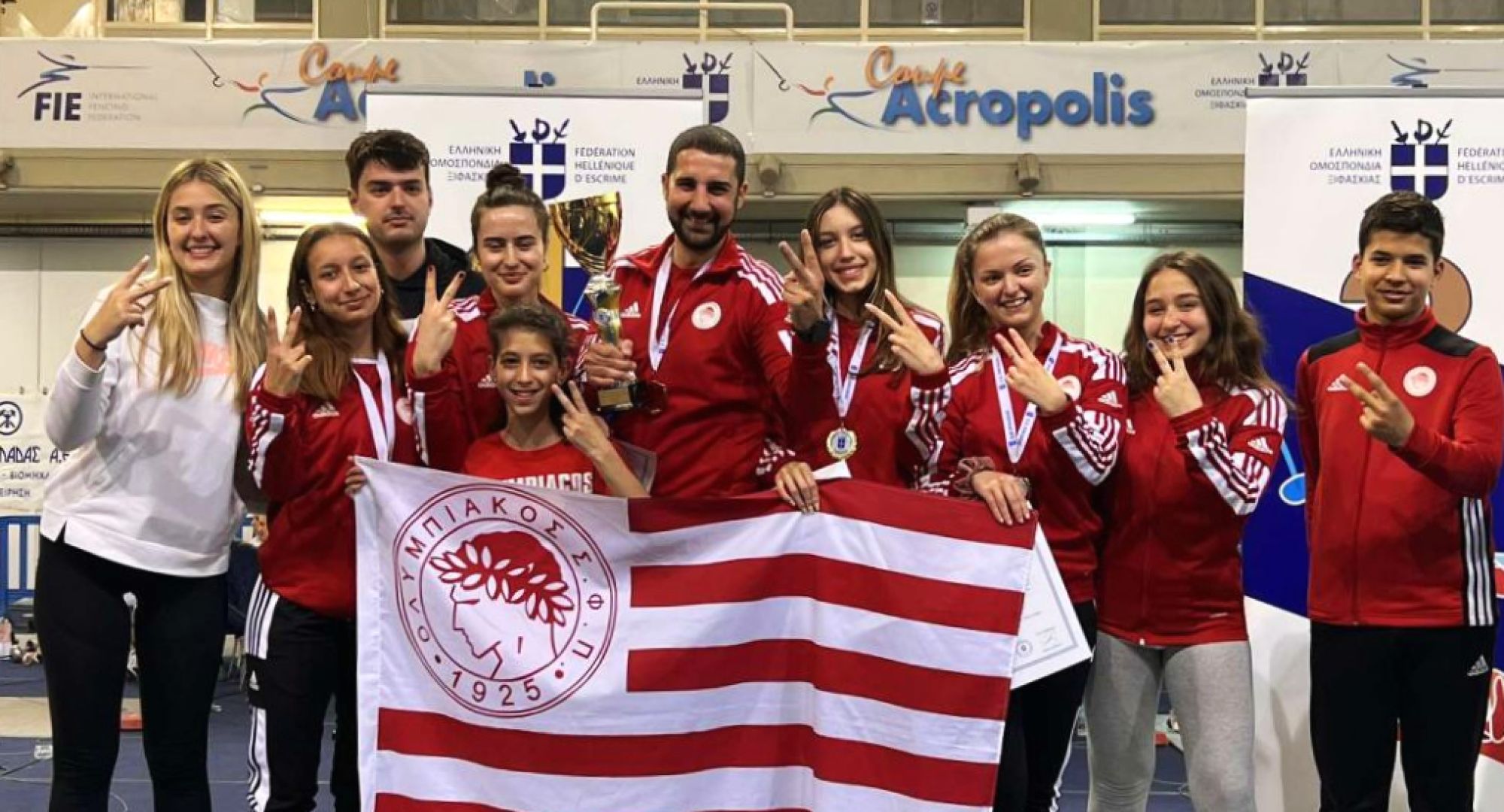 Στο υψηλότερο σκαλί του βάθρου ανέβηκαν τα κορίτσια του τμήματος Ξιφασκίας του Ολυμπιακού που κατέκτησαν την πρώτη θέση στο Πανελλήνιο Πρωτάθλημα Σπάθης στην κατηγορία του ομαδικού Γυναικών. Μετά το χάλκινο μετάλλιο στο ατομικό του Σαββάτου (29/4) από την Κωνσταντακοπούλου, ήρθε το χρυσό για να επισφραγίσει την εξαιρετική χρονιά που διανύουν τα κορίτσια του Γιώργου Τσουρούτα. Η Μαριλένα Γαζεπίδη, η Άννα Δούκα, η Δέσποινα Κωνσταντακοπούλου και η Χριστίνα Χουζούρη αποτέλεσαν την «ερυθρόλευκη» σύνθεση που επέλεξε ο προπονητής του Ολυμπιακού για να λάβει μέρος στη διοργάνωση. Στα προημιτελικά τα κορίτσια διασταυρώθηκαν με την ομάδα του Παναθηναϊκού, με τις «πράσινες» να μην κατεβαίνουν τελικά στην αναμέτρηση και τον Ολυμπιακό να προκρίνεται στα ημιτελικά. Στην τετράδα οι «ερυθρόλευκες» αγωνίστηκαν κόντρα στα Εκπαιδευτήρια Κωστέα Γείτονα και πήραν τη νίκη με 45-31 και μαζί την πρόκριση για τον μεγάλο τελικό. Στην μάχη για το χρυσό, ο Ολυμπιακός βρέθηκε αντιμέτωπος με τον ΑΟ Ασπίδα, με όλες τις αναμετρήσεις να αποδεικνύονται συναρπαστικές. Τελικά τα κορίτσια του Θρύλου πήραν τη νίκη με σκορ 45-32 και αναδείχθηκαν έτσι δίκαια Πρωταθλήτριες Ελλάδος!